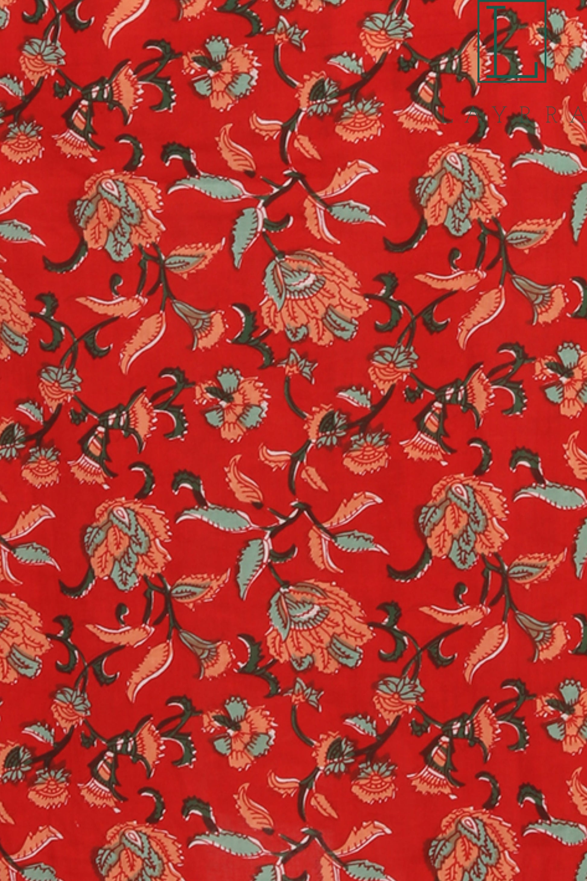 Women Red Orange and White Floral Print Embroidered Work Kurta with Pants & Dupatta - Complete Set