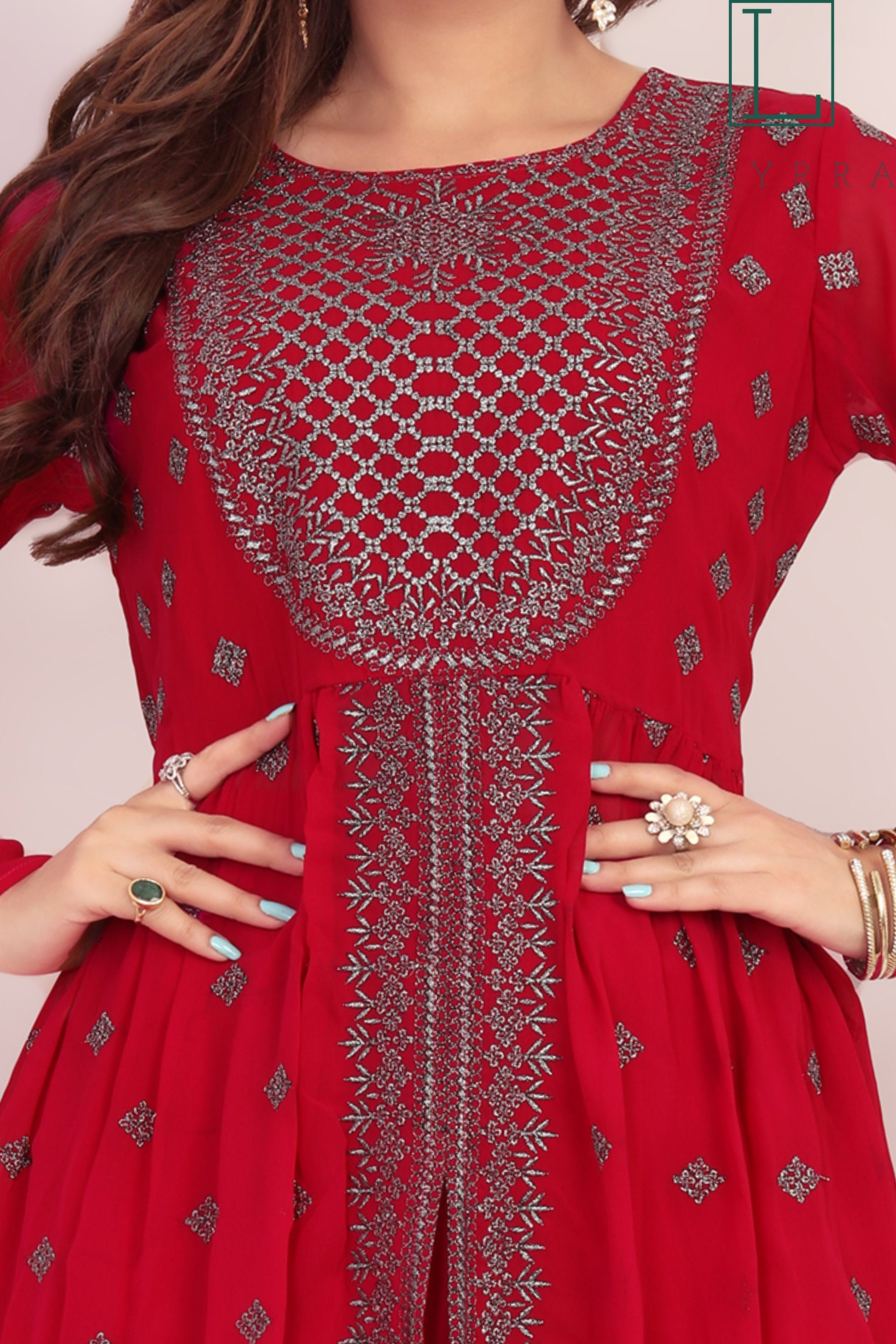 Package Contents: 1 x Women Wine Red & Silver Ethnic Embroidered Kurta with Palazzos and with Dupatta - Complete Set